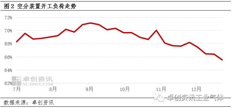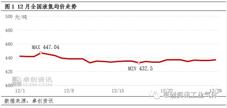 【導語】12月液氮市場正處季節性淡季,供需呈現“雙減”態(tài)勢,月內價格弱(ruò)勢探底後小幅(fú)反彈。展望未來,2024年1月受元(yuán)旦(dàn)假期影響,以及月底春節假期(qī)臨近,液氮市場氛(fēn)圍或難改善,價格仍難上行。進入(rù)12月,液氮市場交投轉弱,月中上旬價格弱勢探底,月(yuè)下旬隨著部分地(dì)區空(kōng)分裝(zhuāng)置降(jiàng)負(fù)、檢(jiǎn)修等影響,市場供應壓(yā)力緩解,價格觸底微幅(fú)反彈。據卓創(chuàng)資(zī)訊數(shù)據監測,截至(zhì)12月28日,中國液氮均價收於436.02元/噸(dūn),較月初(chū)跌1.4%,較月內最低(dī)點漲0.8%。受淡季氛圍影響,12月液氮市(shì)場偏弱整(zhěng)理。通過圖1可以看出,月內液氮(dàn)均價先震蕩探底,後小幅反彈。具體來看,月上旬各地市場交投一般,廠商液位多有攀升,價格接連下探;僅新疆地區受多晶矽行業需求支(zhī)撐,價格上漲(zhǎng)。據卓創資訊數(shù)據監測,截(jié)至12月4日,新疆液氮均價收(shōu)於960元/噸,當日全國均價(jià)收於447.04元/噸,均為月內最高水平。月中旬附近受降雪天氣影響,多地交投進一步轉(zhuǎn)弱,價格弱勢探底,部分全液化裝置成本承壓,關停數量增多,加之部分廠商裝置檢修、突發故(gù)障(zhàng)等存外采需求,液氮市(shì)場交投稍(shāo)有(yǒu)改(gǎi)善,價格(gé)小幅反彈;月(yuè)下旬以(yǐ)來,受(shòu)大氣汙染事件影響,河北(běi)及山東等(děng)地廠商開工負荷下滑,供應減少對價格產生支(zhī)撐。截(jié)至(zhì)12月28日,山東液氮價格至(zhì)420-480元/噸(dūn),均價較月內最低(dī)點漲36.36%;冀南液氮價格至(zhì)350-450元/噸,均價較月內最低點漲6.67%;全國液氮均價收於(yú)436.02元/噸,較月初跌1.4%,較月內最低點漲(zhǎng)0.8%。需求乏力,供應持續下滑(huá)後(hòu)對市場稍有提振進入淡季,12月液氮市場供需整(zhěng)體呈現“雙減”態勢。具體來看,月內空分開工負荷率呈弱勢下滑態勢,月上旬隨(suí)著配套行業開工下滑,空分開工負荷率小幅下降;月中下旬,隨著氧氮價格持續下探,全液化成本壓力下停車增加,因此空(kōng)分開工負荷下滑明顯,市場(chǎng)供應(yīng)壓力減少,供應麵對液氮市場稍有提振。據卓創資訊數據監(jiān)測,截至12月27日,12月平均空分開工負荷率在66.48%,環比下滑1.88個百分點(diǎn)。需求麵,月內下遊相關(guān)行(háng)業表現一般,各地缺乏批量采購支撐。其中(zhōng),鋰電池行(háng)業(yè)正(zhèng)極材料市場表現偏弱(ruò),傳統消費(fèi)淡季內終端(duān)需求無利多消息,下(xià)遊企業產銷兩淡、采購積極(jí)性(xìng)下降,導(dǎo)致正極材料各市場(chǎng)新單交投(tóu)活躍度較低,企業(yè)被動降負,行業開工下降1-2個百分點,正極(jí)材料行業對液氮需求難有放量。展望未來,2024年1月液氮市場(chǎng)或仍將偏弱(ruò)震蕩。1月來(lái)看,月初受元旦假期影響,廠商心態偏謹慎,節間部(bù)分(fèn)廠商液位或有(yǒu)攀升可能,節後積極排庫為主;月(yuè)下旬隨(suí)著春節臨近(jìn),市場供需或進一(yī)步轉弱,部分高價仍存下行可能。綜合來看,卓創資訊預計2024年1月液氮市場價格或仍難上行。