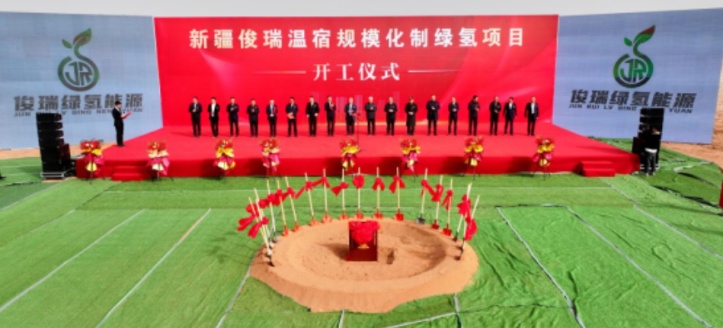新疆俊瑞溫宿(xiǔ)規模化製綠氫項目開工儀式成(chéng)功舉辦