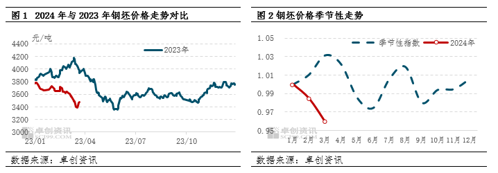3月鋼坯價格環比下降4.16% 與季節性(xìng)指數走勢相悖