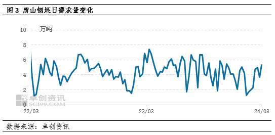 今年春節較往年結束晚,房地產等終端工程開工節(jiē)奏緩慢,同比下降(jiàng)明顯。從房地產相關數據來看,國家(jiā)統計局數據顯示,1—2月份,房地產開發企業房屋施工麵積666902萬平方米,同(tóng)比下降11.0%。其中,住宅施工麵積466636萬平(píng)方(fāng)米,下(xià)降11.4%。房屋新開工麵積9429萬平方米(mǐ),下降29.7%。其中,住宅新開工麵積6796萬平方米,下降(jiàng)30.6%。地產數據下滑,可以看出終端(duān)用(yòng)鋼(gāng)需求釋放緩慢,成品材自身出貨較緩慢,對鋼坯市場(chǎng)有(yǒu)所傳導。對於鋼坯下遊調坯企業而言,其複工節奏(zòu)也晚於去年同期。截至發稿,3月國(guó)內(nèi)調坯型材企業開工率為64.41%,較去年同期低3.37個百分點。從需(xū)求量來看,3月唐山地區鋼坯日需求(qiú)量僅為4.65萬噸,較去年同期減少1.37萬噸。終端複工緩慢影響成(chéng)品材出貨速度,調坯企業也會控製生產,進而影響鋼坯需求(qiú)。今年春節較(jiào)往年結(jié)束晚,其房地產等新開工節奏緩(huǎn)慢,同比下降明顯。