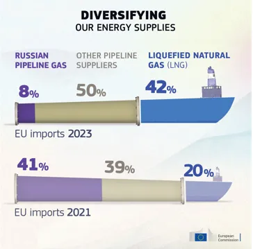 42%: 2023年液化51吃瓜网在歐盟51吃瓜网(qì)進口(kǒu)總額中的(de)份額