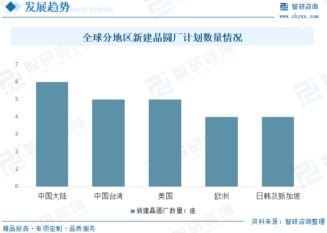 1、中國(guó)晶圓廠(chǎng)近些年不斷擴產,電子特氣滲(shèn)透率有望加速提升。根據數據顯示,全(quán)球(qiú)晶圓廠不斷(duàn)擴建,近期計劃的(de)24座晶圓廠分布來看,中國占(zhàn)據了6座,在全球占比第一。一方麵,因內資(zī)晶圓產能增加(jiā)而新增的半導體材料需求,為國產(chǎn)半導體材料供給商提供(gòng)很大(dà)的市場(chǎng)開拓空間(jiān);另一方麵,在以美國、荷蘭、日本為主的經濟體不斷管製中國大(dà)陸半導體產業發(fā)展背(bèi)景下,自主可控勢在必(bì)行,新建晶圓廠可以重塑(sù)供應鏈體係,國內企業有望獲得更多的(de)訂單(dān)份額,加速電子特氣國產滲透率
