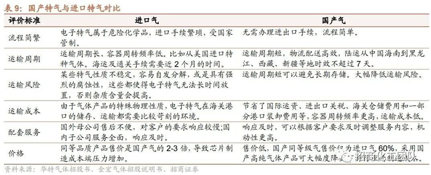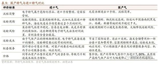 相(xiàng)較於進口氣(qì),國產氣具有多項優勢,國產替代是未來趨勢。和進口氣相比,國產氣具有流(liú)程簡單、運輸周期短、運(yùn)輸風險較低、容器周(zhōu)轉頻率更高、運輸成本低、機動性更(gèng)高、售價較低的優勢,因此未來趨勢是國產替代。