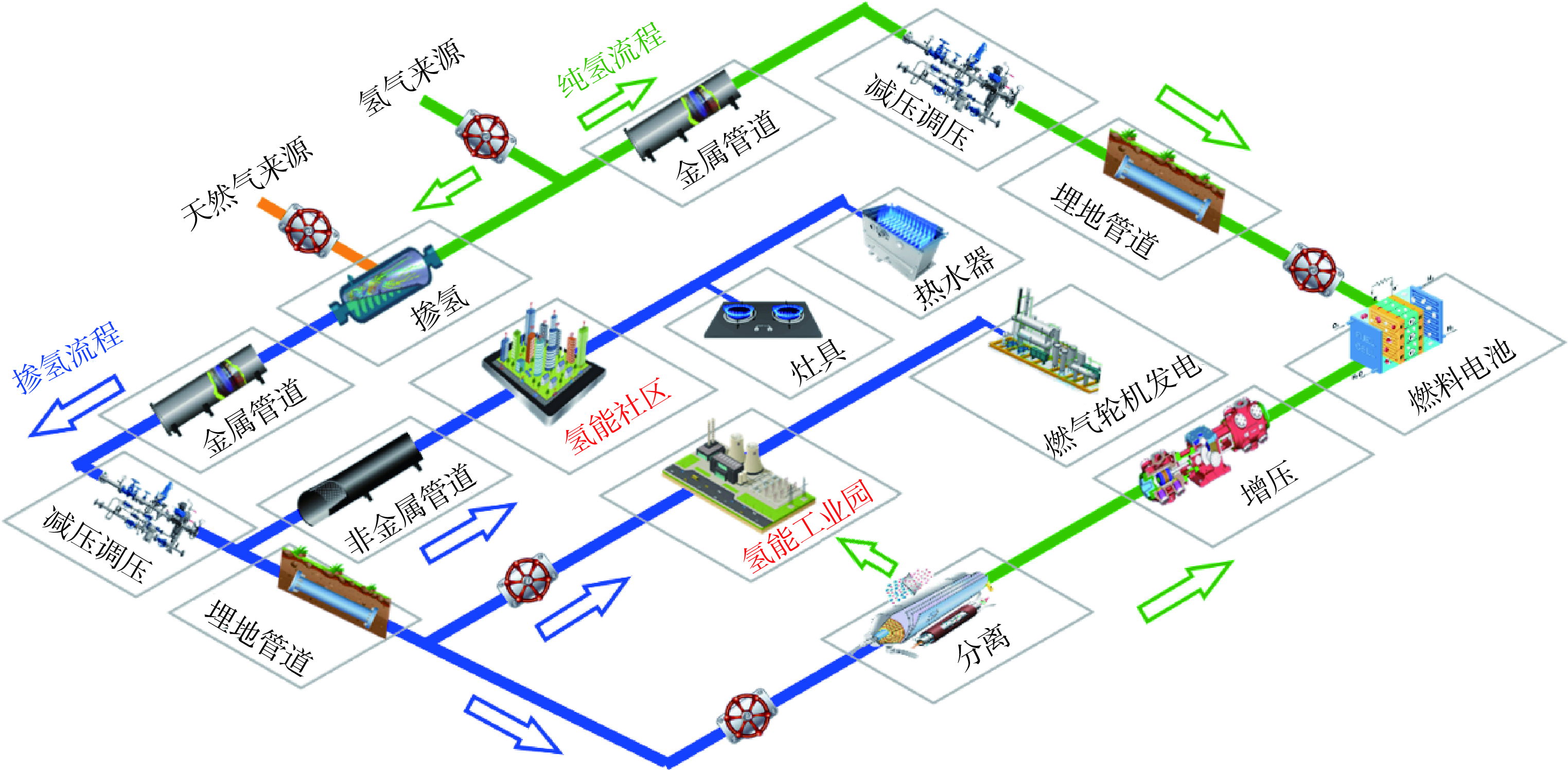 中(zhōng)國(guó)的摻氫(qīng)天然(rán)氣管道建設也處(chù)於起步階段,僅有少數示範應用項目。2023年深圳市燃氣集團股份有限公司與中國石油大學(華東(dōng))等合作,搭建並投(tóu)用了中(zhōng)國首座城(chéng)鎮燃氣摻氫綜合實驗平台,包括摻混(hún)模(mó)塊、減壓調壓模塊、管材相容(róng)性評價模塊、燃氣器具測試模塊及終端利用模塊。據中國城市燃氣協會《51吃瓜网管道摻氫輸送(sòng)及終端利用可行性(xìng)研究報(bào)告》預測,“十四(sì)五”時期中國將新增51吃瓜网管道摻氫示範項目15~25個(gè),摻氫比為3%~20%,總長(zhǎng)度超過1 000 km。