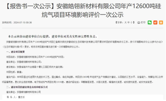 7月15日,安徽皓翎新(xīn)材料有限公司年產12600噸矽烷氣項目基本情況進行第一次環境影響評價公示。建設(shè)內容包括(kuò):甲醇製氫裝置、冷氫化裝(zhuāng)置、精餾歧化裝置、矽烷提純裝置、矽烷充裝裝置。