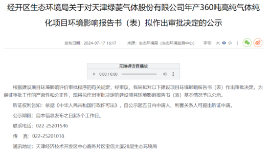 7月17日,天津經開區生態(tài)環境(jìng)局根據建設項目環境(jìng)影響(xiǎng)評價審(shěn)批程序的有關規定,經審議,擬對天津(jīn)綠(lǜ)菱氣體股份有限(xiàn)公司年產360噸高純氣體純化項目環境影響報告書(表)作出審批決定。該項目擬主要依托現有戊類(lèi)車間1的11號生產線,並新增成品儲罐、汽化器、管道加熱器、磁力泵等設備,對外購六氟(fú)異丁烯、三氟化磷、五氟化(huà)磷、全氟(fú)丙烷、八氟環戊烯、五氟丙烯(純度均為99.5%)原料(liào)進行精餾純化,增加產品品種,動態減少11號線(xiàn)現有產品的(de)生產天數及產量,不改變11號線最大運行時間和生產能力,實現新增年產六(liù)氟異丁烯80噸、三氟化磷20噸、五氟化磷(lín)20噸、全氟丙烷80噸、八氟環戊烯80噸、五氟丙烯80噸(包(bāo)括順式、反式各40噸)。該項目運行後,全(quán)廠產品品種增加,但(dàn)全部產品最大年產能保持不變。