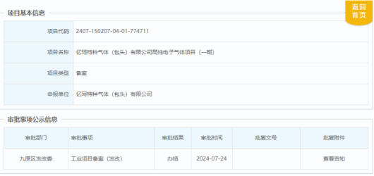 7月23日,湖北省投資項目(mù)在線審批監管平台發布了宜昌(chāng)南玻矽材料有限公司年產5000噸電子級矽烷(wán)氣及配套(tào)儲氫項目受(shòu)理(lǐ)的(de)信息。項目建成後,年產5000噸電(diàn)子級矽烷氣及1000m³製氫(qīng)儲能規模。