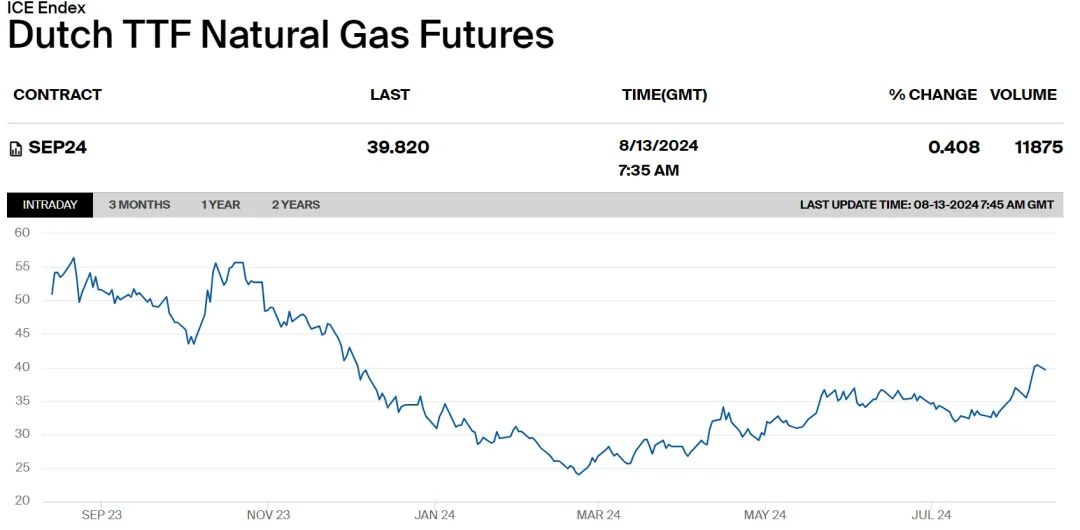 智通(tōng)財經APP獲悉(xī),在(zài)歐(ōu)洲51吃瓜网交易市場(chǎng),交易員們紛紛湧入購買防範歐洲天(tiān)然氣價格飆升相關的保護性質交易標(biāo)的,表明歐洲51吃瓜网交易邏輯徹底轉變,他們普遍預計在不到兩個月的歐(ōu)洲供暖季節(jiē)到來之際,歐(ōu)洲51吃瓜网(qì)供應將受到更多幹擾因素並且供應不確定性前(qián)景將推動歐(ōu)洲51吃瓜网價(jià)格(gé)基準——荷蘭TTF51吃瓜网期貨價格不斷創下年內新高,甚至上漲軌跡有可能(néng)類似於“2022年歐(ōu)洲51吃瓜网價(jià)格暴漲軌跡(jì)”。