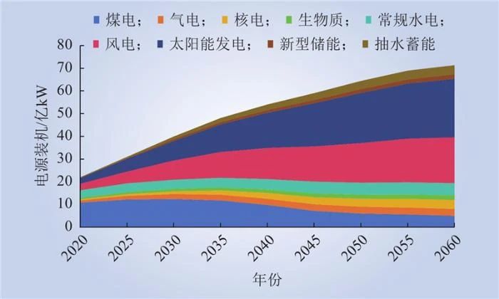Fig.3  National power installation mix from 2020 to 2060