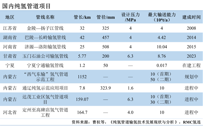 2、國內輸氫管道發展現狀