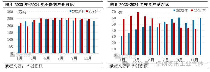 月內下遊需求整體較為(wéi)一般,僅(jǐn)不鏽鋼暫時性的用氬需求放量,對部分(fèn)地區價格形成支撐,隨後行情偏弱,在采購縮量下,液氬(yà)價格高位下滑(huá)。具體來(lái)看,月(yuè)上(shàng)旬,華東以及華南地區不鏽鋼用氬需求放量,帶動本地及周邊價格上漲,月中下旬(xún),不鏽鋼行情轉弱,生產企業降負減產,對液氬需求縮量明顯,導致華東、華中以及華南地區價格持續(xù)下滑(huá)。光伏方麵,當下光伏需求仍難存好轉,終端需求偏弱,矽片(piàn)企業開工維持(chí)低位,仍以消化(huà)庫存為主,難以對價格(gé)形成支撐(chēng)。據數據統計,11月矽片產量預計在42GW,環(huán)比降3.69%。