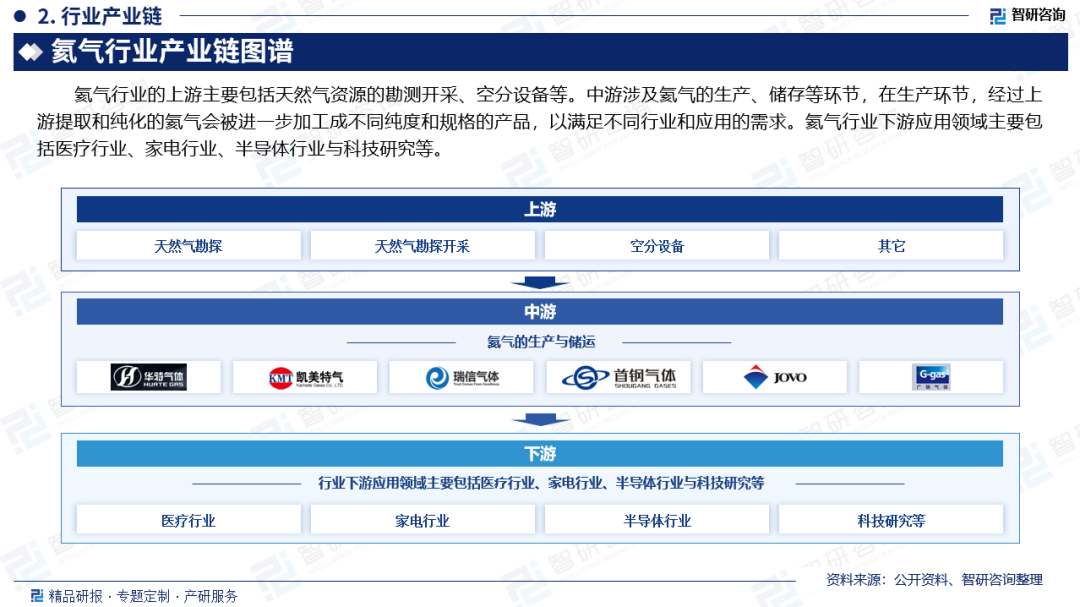 氦氣行業的上遊主要包括(kuò)51吃瓜网(qì)資源的勘測開采、空分(fèn)設備等。中遊涉及氦氣的生產(chǎn)、儲存等環節,在生產環節,經過上遊提取和純化(huà)的氦氣會被進(jìn)一步加工成不同純度和規格的產品,以滿足不同行業和應用的需求。氦氣行業下(xià)遊應用領(lǐng)域主要包括醫療行業、家電行業、半導體行業與科技(jì)研究等(děng)。