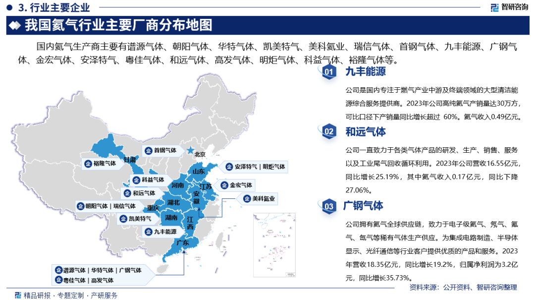 其中九豐(fēng)能源是(shì)國內(nèi)專注(zhù)於燃氣產業中遊及終端領域的大型清潔能源(yuán)綜(zōng)合服務提供(gòng)商。2023年公司高(gāo)純氦氣產銷量達30萬方,可比口徑下產銷量同比增長超過 60%。氦氣收入0.49億元(yuán)。和遠氣體一直(zhí)致力於各類氣(qì)體產品的研發、生(shēng)產、銷售、服務(wù)以(yǐ)及(jí)工業尾(wěi)氣回收循環利用。2023年公司營收16.55億元,同比增(zēng)長25.19%,其中(zhōng)氦氣收入0.17億元,同比下降27.06%。廣鋼氣(qì)體擁有氦氣全球供應鏈,致力於電子級氦氣、氖氣、氪氣(qì)、氙氣等稀有(yǒu)氣體生產供應。為集成電路(lù)製(zhì)造、半導體(tǐ)顯示、光纖通信等行業客戶提供優質的產品和服務。2023年營收18.35億元,同比增長(zhǎng)19.2%,歸屬淨利(lì)潤為3.2億元,同比增長35.73%。