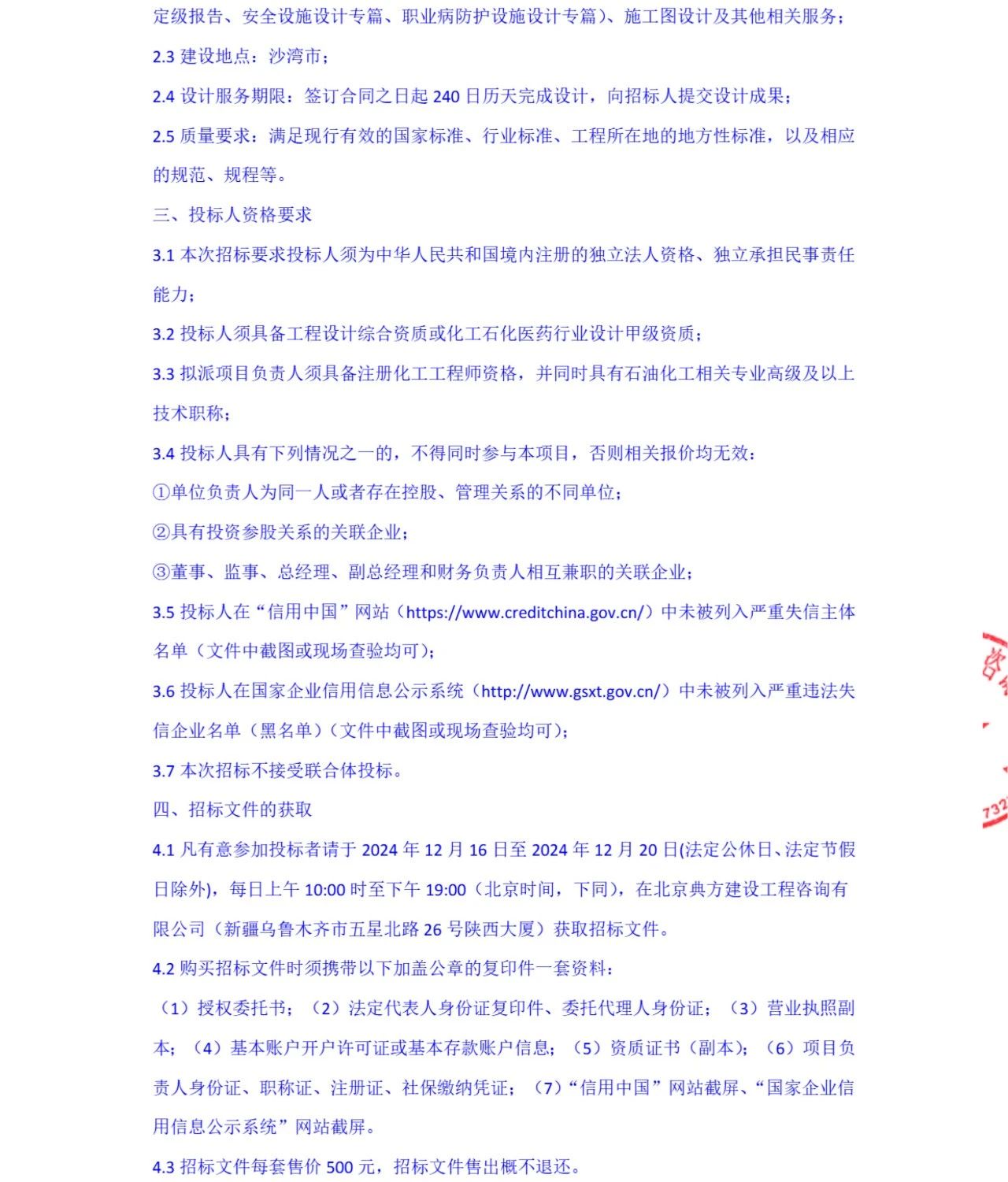 該招標文件獲取日期截至(zhì)2024年12月20日19:00。