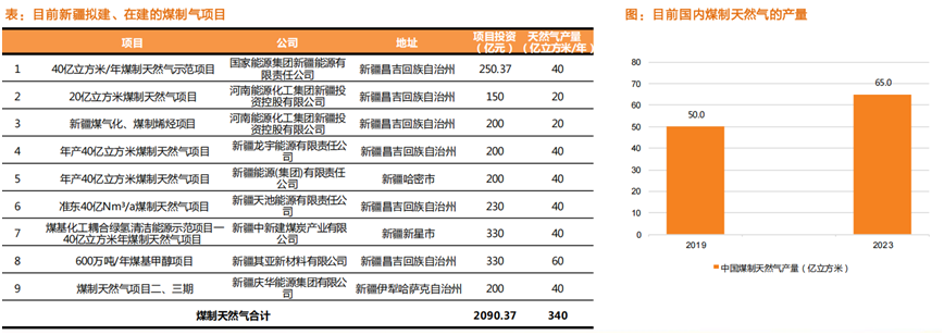 煤製氣(qì)項目(mù):新疆擬建、在建項目合計340億立方(fāng)米/年,總投資超2000億(yì)元(yuán)。
