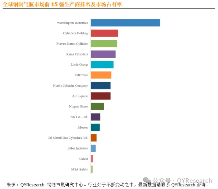 根據QYResearch頭部企業研究中(zhōng)心調研,全球範圍內鋼製氣瓶生產商主要包括Worthington Industries、Cylinders Holding、Everest Kanto Cylinder、Rama Cylinders、Norris Cylinder Company等。