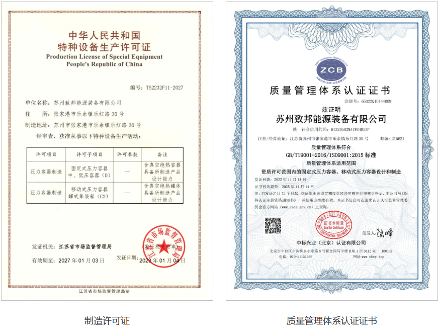 蘇州致邦能源裝備有限公(gōng)司是長春致遠新能源裝備股份有(yǒu)限公司全資子公司。公司位於張家港樂餘(yú)鎮202縣(xiàn)道與樂豐路交界處(致邦能源裝備),占地麵積60000平方米,廠房建築麵積32000平方米。專業從事各類低溫液體儲(chǔ)罐、船用燃料罐、罐式集裝箱的(de)設計、製造、銷售(shòu)及氣化站、加氣(qì)站、加注躉船、子母罐等(děng)係統集成與總包工程服務。公司注冊資金1億元,員工120餘人,其中專(zhuān)業(yè)技術人員30餘(yú)人,具有400台套各類低溫儲運裝備的生產能力。公司秉承“專業技術、精致(zhì)產品、優(yōu)質服務,誠(chéng)信合作”的企業理念,以打造LNG和工業氣體儲運裝備(bèi)知名製造服務(wù)商為目標,竭誠為你提供最優質的產品和服務。