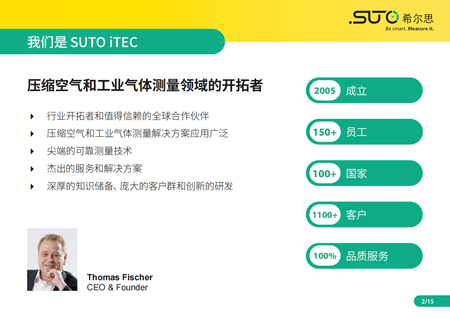 從2005成立至(zhì)今, 希爾思公司研發(fā)和生產了一係列針對壓(yā)縮空氣係統和氣體的高質量和創新的測量技術。作為一個德國的製造商, 我(wǒ)們非常重視(shì)產品質量和友(yǒu)好的客戶服務。我們認為, 服務就是貼近我們的客戶, 為客戶提供切實可行的方案, 當(dāng)客戶有(yǒu)任何需求(qiú)時快速(sù)做出(chū)反應。我們通(tōng)過國際化的布局來實現這一目標:位於德國(布金根)和中國(深圳(zhèn))的總部基地(dì)以(yǐ)及在這兩(liǎng)個國家所在區域內的幾個子(zǐ)公司。我們確(què)信, 和我(wǒ)們的長(zhǎng)期合作夥伴一道(dào),我們能夠為(wéi)客戶提供及時且專業的服務。