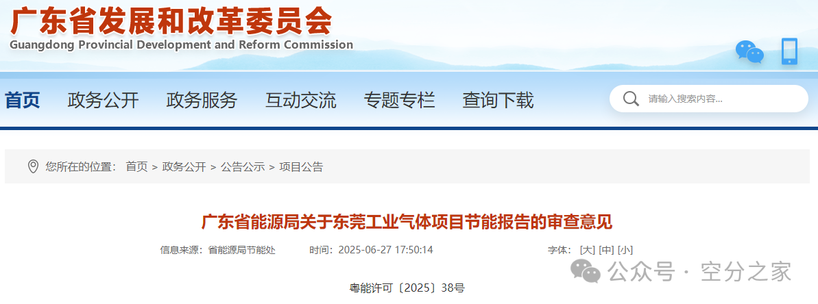 2025年6月27日,廣東省能源局(jú)發布審查意見(jiàn),原則同意液化空氣(東莞)氣體有限公司的東莞工業氣(qì)體項目(mù)節能報告。