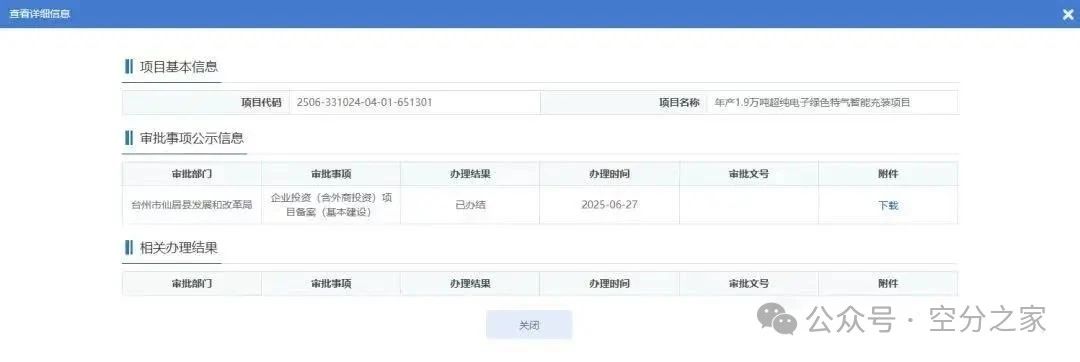 2025年6月27日,浙江普銳斯氣體有(yǒu)限公司的年產1.9萬噸超純(chún)電子綠(lǜ)色特氣智(zhì)能充裝項(xiàng)目正式獲得備案(àn)。該項目位於浙江省台州市仙居縣下各鎮(zhèn)玉泉村,計(jì)劃建設充裝車間(jiān)、丁類車間、乙(yǐ)類倉庫、綜合樓、罐區以及鋼瓶製造生(shēng)產線等設施(shī),總建築麵積約(yuē)為15592平方米。