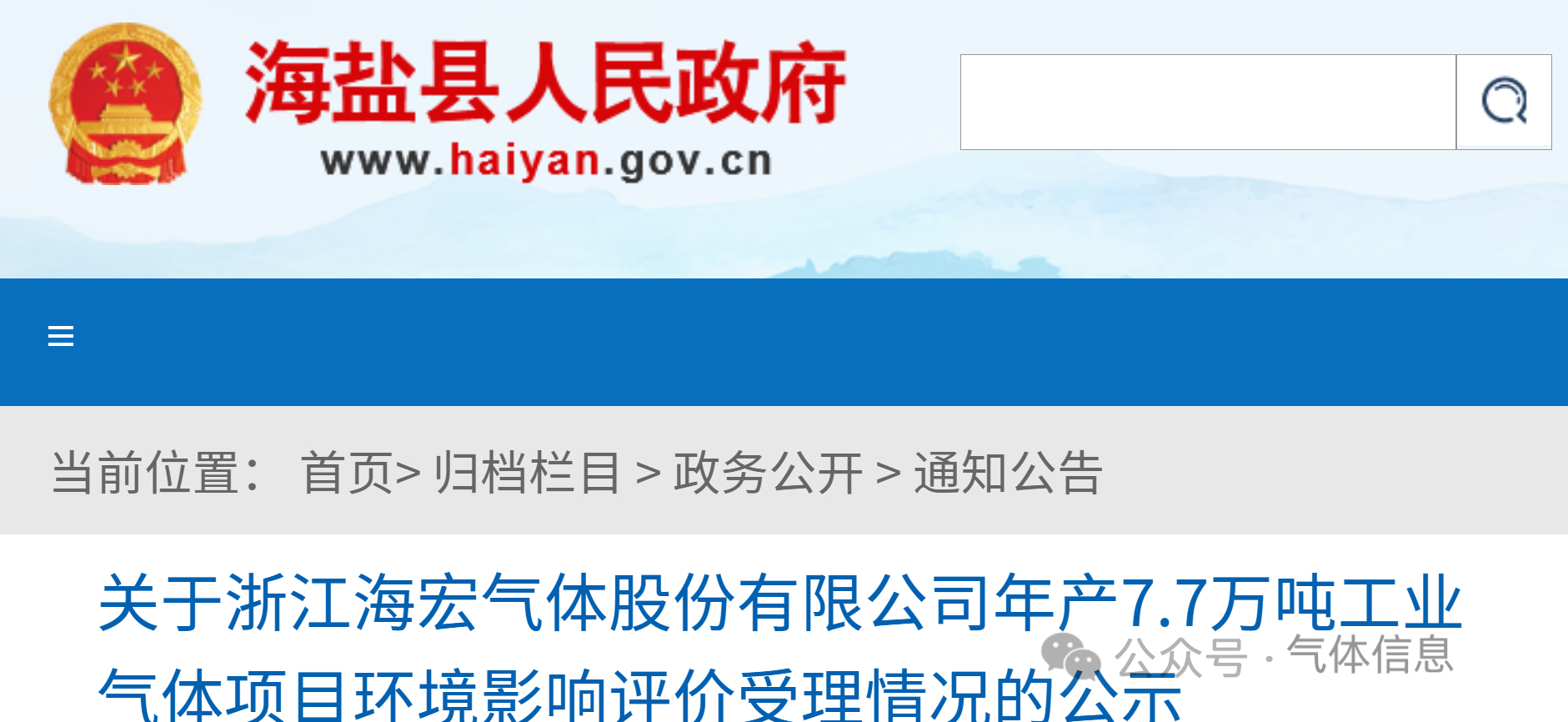 年產7.7萬噸工業氣體項目公示