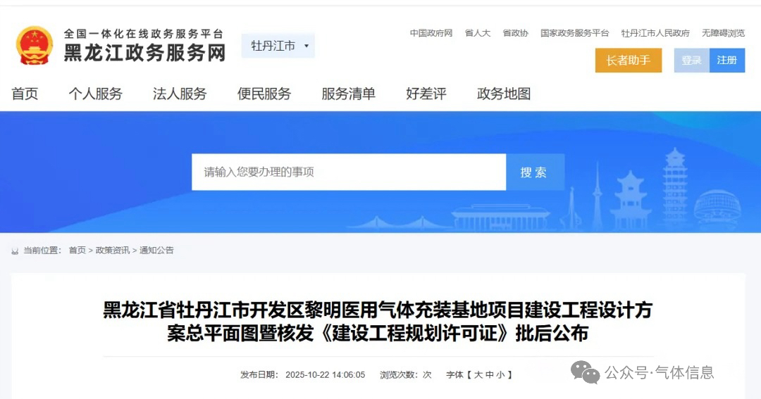 10月22日,黑龍江政務服務官網發布消息,黎明醫(yī)用氣(qì)體充裝(zhuāng)基地項目正式獲批(pī)公示。該項目位於黑龍江省牡丹江市開發區,由牡丹江黎明醫用氧氣有限公司負責建設。