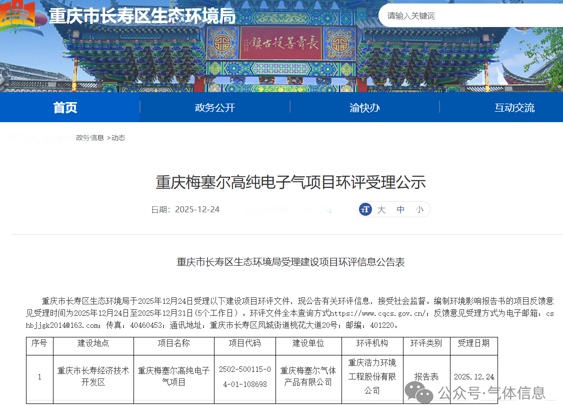 項目名稱:重慶梅塞爾(ěr)高純電(diàn)子氣項目;