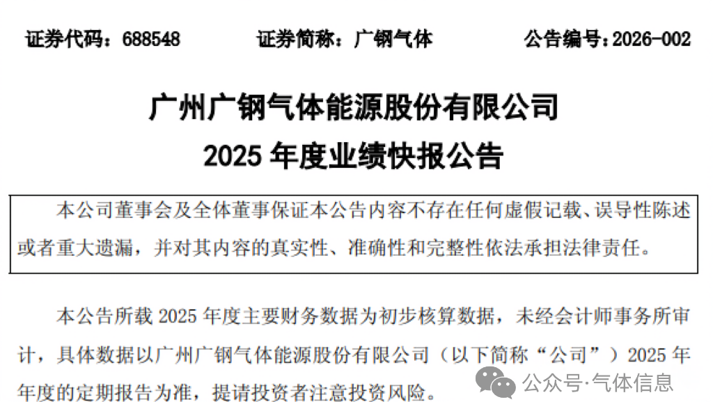 1月29日,廣州廣鋼(gāng)氣體能源股份有限公司(688548)發布2025年度業績快報。