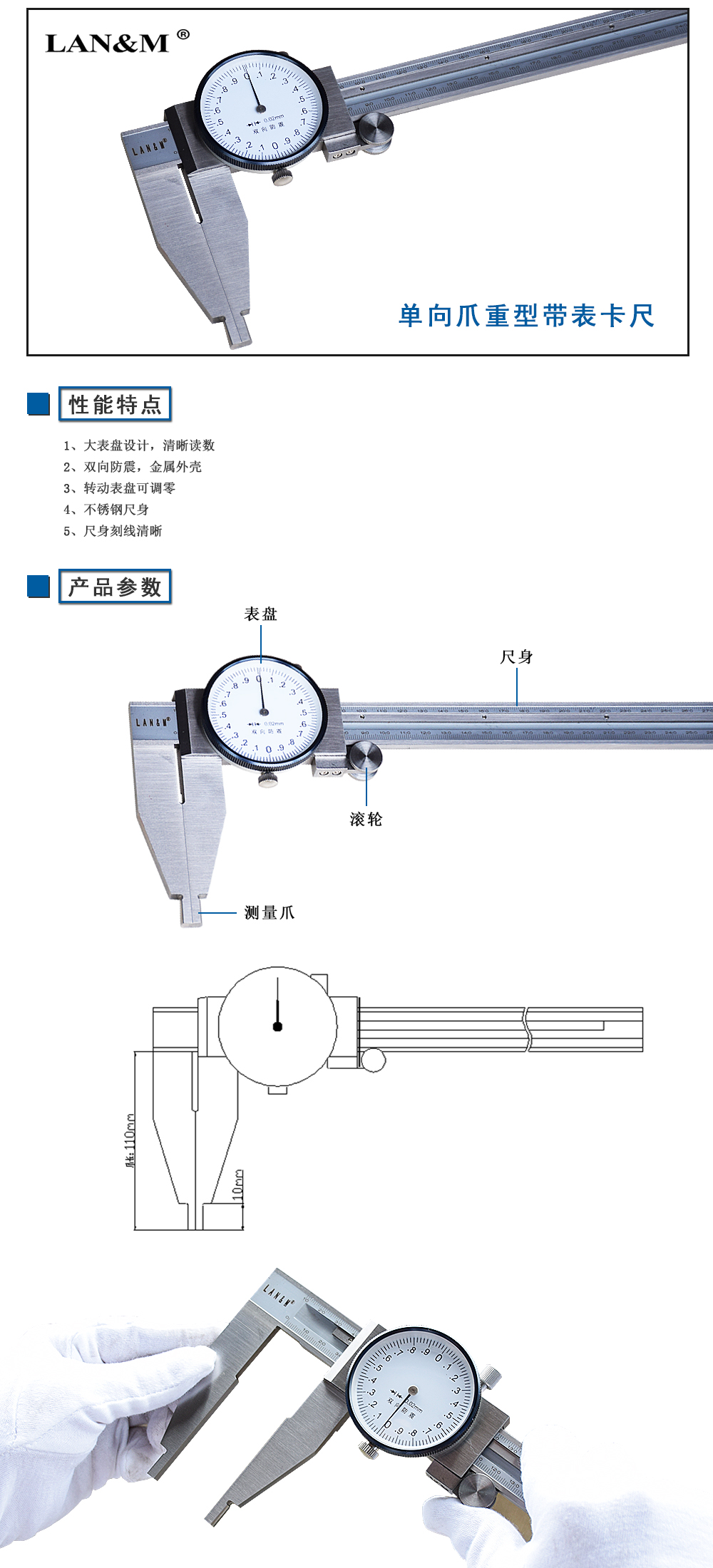 單向爪帶表卡尺