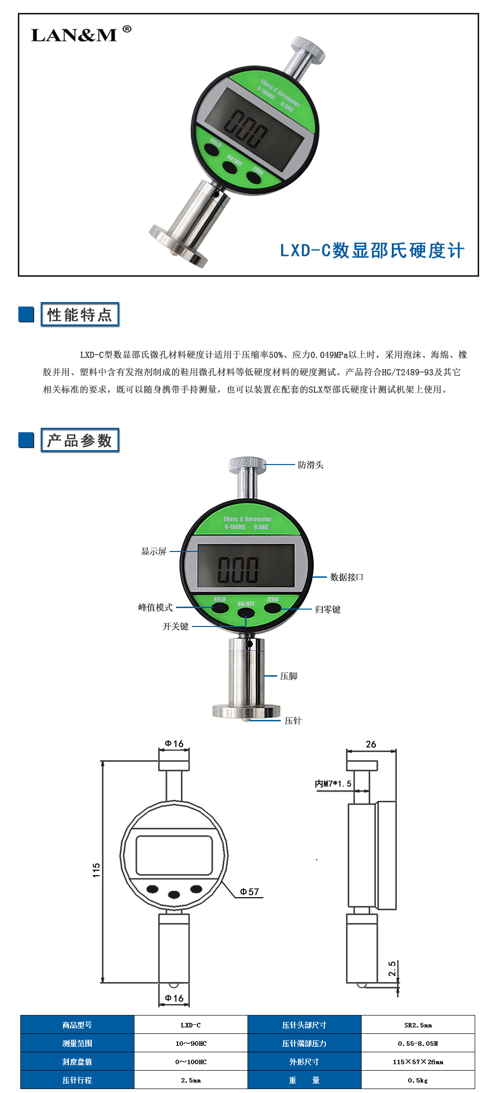 LXD-C數顯邵氏硬度計(jì)