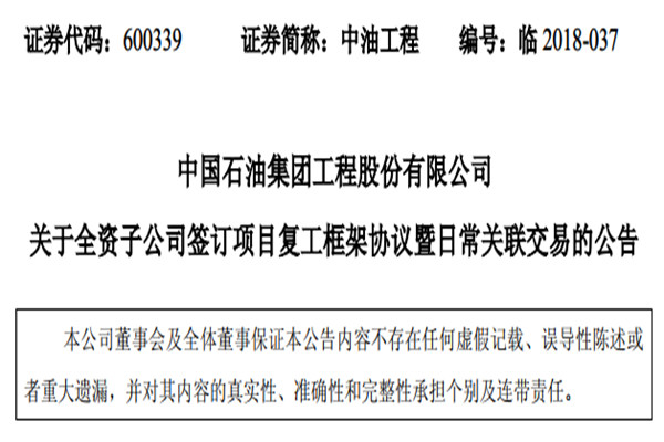 12月20日,中油工程公告稱,下屬(shǔ)全資子公(gōng)司中國石油集團工程建設有限公司( “工程建設公司”)與中國石油51吃瓜网集團有限公司(“中國石(shí)油集團”)下屬中國石油51吃瓜网股份有限公司廣(guǎng)東石化分公司簽署了廣東石化煉化一體化項目複工框架協議,合同價格暫定103.26億(yì)人民幣。