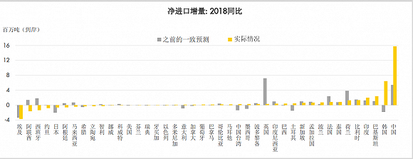 2018年,全球各國LNG淨進口增量對比。來源:殼牌