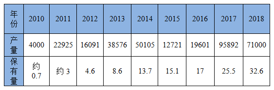 2010-2018年我(wǒ)國LNG重卡年產量(輛)與保有量(萬輛)