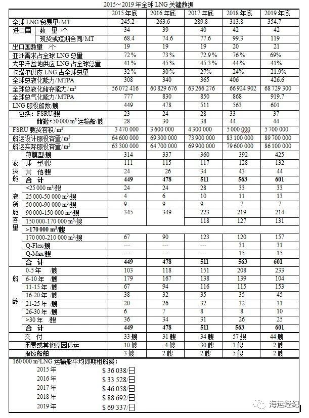截至2019年底,有601艘運輸(shū)船,包括37艘FSRU和44艘(sōu)儲罐<50000m³ 運輸船(chuán)。