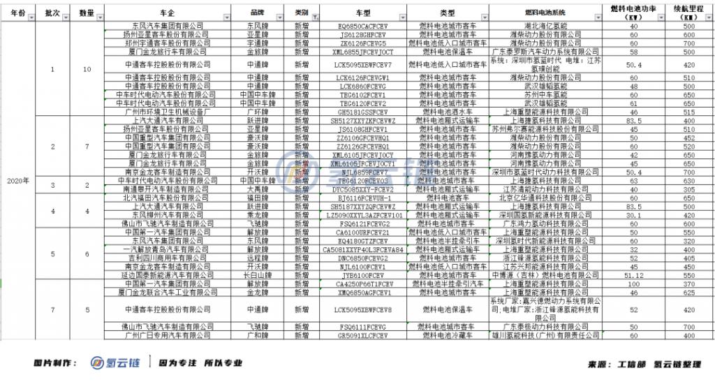 氫雲報告:中通客車、濰柴動(dòng)力領銜,半年34款燃料(liào)電(diàn)池汽(qì)車上榜推薦目錄信息匯總