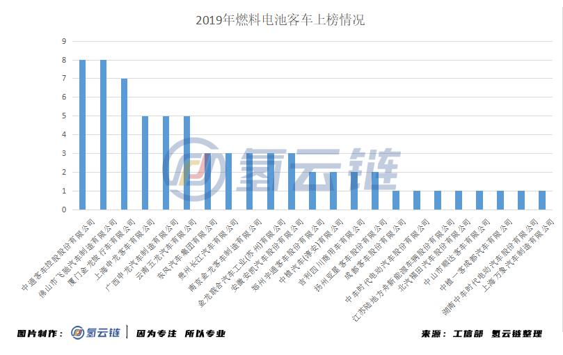 圖 7 2019 年推薦目錄客車(chē)企業上榜情況 來(lái)源:工信部 氫(qīng)雲鏈整理