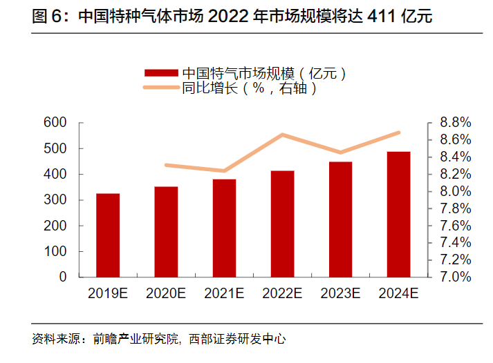 近幾(jǐ)年國內特氣市場規模平均(jun1)增速超過15%