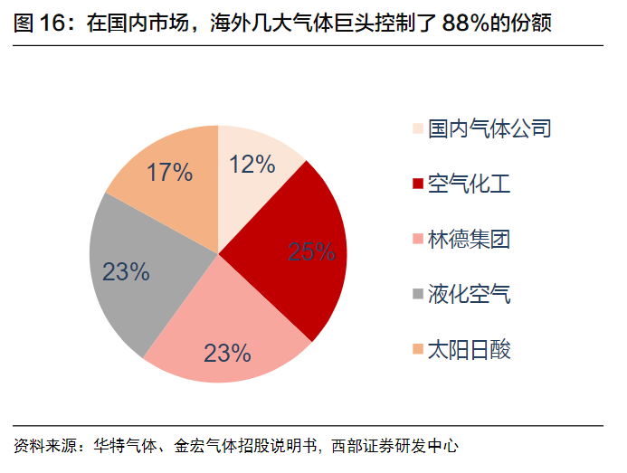 國(guó)產化需求迫切。據卓創資訊統計,2017年我國電子特(tè)種氣體市場中空氣化工、液(yè)化空氣、大陽日酸、普萊克斯(sī)、林德集團等國外氣體公司的合計市場占(zhàn)比為88%,國內氣體公司市場份額合計僅占12%。根據(jù)中國(guó)工業(yè)氣體工業協會統計(jì),目前集成電路(lù)生(shēng)產(chǎn)用(yòng)的特種氣體,我國僅能生產約20%的品種,其餘均依賴進口。