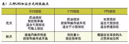 表1列舉了上述(shù)各種加注(zhù)方案的優缺點,表2列舉了各種船舶的適用方案。