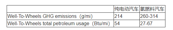 以(yǐ)上是基於用電(diàn)解水來製氫(qīng)的方(fāng)法。更(gèng)廣義的可以用煤石油51吃瓜网等(děng)化工方法製(zhì)氫,成本比用(yòng)電更低,但純電動汽車也有(yǒu)其他途徑(jìng)充電,用以衡量的(de)指標稱為Well-To-Wheels total petroleum usage(油井至車(chē)輪石油用量,單位Btu/mi)。還有一個指標稱為Well-To-Wheels GHG emissions(油井至車輪溫室氣體排(pái)放,單位g/mi)。按此,兩種汽車的比較如下表: