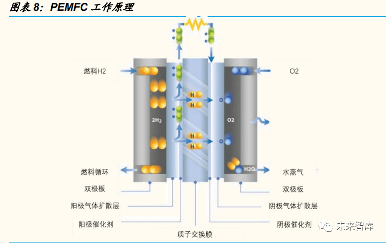 ◼ 質子交換膜性能決定電池性能、壽命(mìng)。質子交換膜在燃料(liào)電池的主要功能 是實現質子(zǐ)快速傳導,同(tóng)時也阻隔氫氣(qì)氧氣(qì)和氮氣在陰陽極間的滲透。質 子交換膜性能的好壞直接決定著燃料電池的性能和使用壽命。理(lǐ)想的質子 交換膜需要具備高質子傳導率,低電子導電率,氣體滲透性低,化學、電 化學、熱穩定性好。