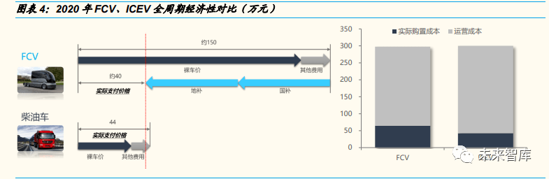 FCV(參數|圖片) 在重載、長續(xù)航領域優勢明顯,加氫更為便(biàn)捷,成為商用車電動化的 優選。商用場景下(xià)隨續航裏程增長,鋰電車輛電池質量占比快(kuài)速提升,造 成車輛運載(zǎi)能力下降。相較(jiào)鋰電,燃料電池能量密度更高(gāo),相同續航(háng)裏程 下,FCV 在自重方麵的優勢將增加有效(xiào)荷載。除此之外,FCV 能夠在 10- 15min 內完成氫氣加注,而對純電車型,快充樁(zhuāng)充(chōng)電時長仍需 1 小時上下, 慢充(chōng)近十小時。由於商用(yòng)運營強度更(gèng)高,FCV 成為其電(diàn)動化的優選方案。