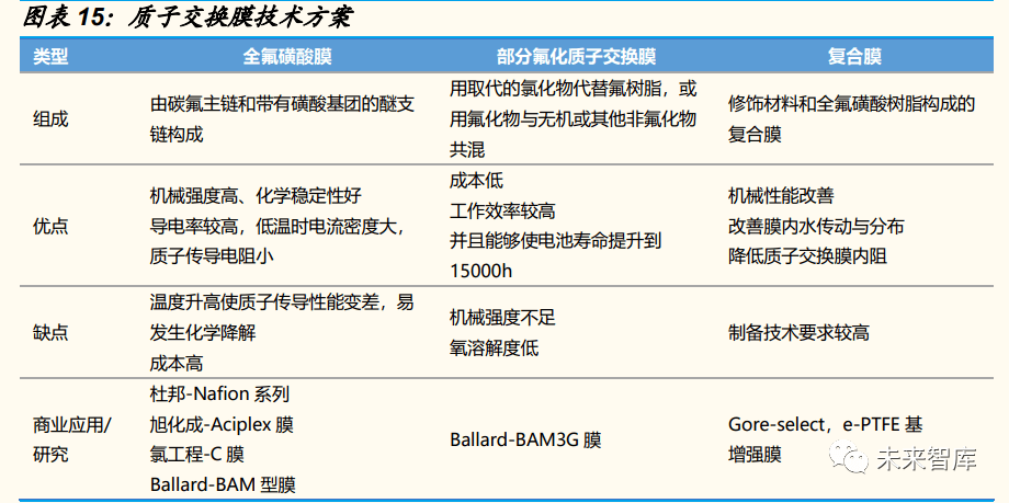 質(zhì)子交換膜:主(zhǔ)要(yào)參與者為海外企業。目前市(shì)麵上銷售的質(zhì)子交換膜主要 包括美國 Gore 公司(sī) SELECT 係列、Dupont 公司的 Nafion 係列、加拿大 Ballard 公司 BAM 膜等以及(jí)國內東嶽集團的全氟磺酸質子交換膜。
