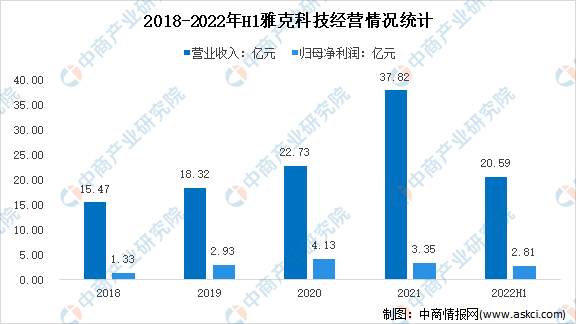2021年雅克科技實現營業收入37.82億元,同比增長66.4%;歸屬於上市公司股東的淨(jìng)利潤(rùn)3.35億元(yuán),同比下(xià)降18.98%。2022年上半年實現(xiàn)營業收入20.59億元,歸母淨利潤2.81億元。
