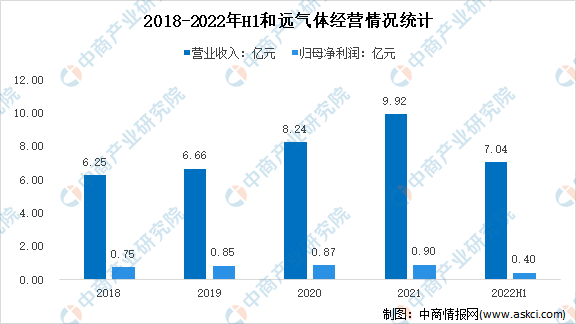 2021年和遠氣體實現(xiàn)營業收入9.92億元,同比增長(zhǎng)20.34 %;歸屬於上市(shì)公司股東的(de)淨利潤0.90億元,同比增長3.6 %。2021年和(hé)遠氣體進一步拓展液態產品市場,液(yè)態(tài)氣體銷量大幅提高。同時,瓶裝氣體業務全麵恢複,導致(zhì)營業收(shōu)入同比增加。另一方麵(miàn),和遠氣體為下一步戰略發(fā)展做好人才及資金儲(chǔ)備(bèi),積極引進行業研發(fā)人才,擴大融資規模,人工成本及財務費用增加,導致淨利潤(rùn)增(zēng)幅(fú)小於營業收入增幅。2022年上半年實現(xiàn)營業收入7.04億元,歸母淨利潤0.40億元。