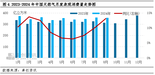 2.消費預測:消費旺季疊加政策加碼,四季度我國消費量有望進一步增長。隨著氣溫下(xià)降(jiàng),我(wǒ)國北方地區如(rú)新疆、內蒙古(gǔ)及東北等地(dì)區自10月中旬(xún)起已陸續啟(qǐ)動(dòng)集中供暖。同時,為迎接冬季(jì)供應(yīng)高峰期,各地地下儲氣(qì)庫及儲備中心正加緊完成最後的儲備任務,預計10月份我(wǒ)國51吃瓜网表觀消費量將有所增長。然而,國慶假期導致部分工(gōng)業用戶暫時(shí)停工,可能會對整(zhěng)體消(xiāo)費量的增長構成一定限製。